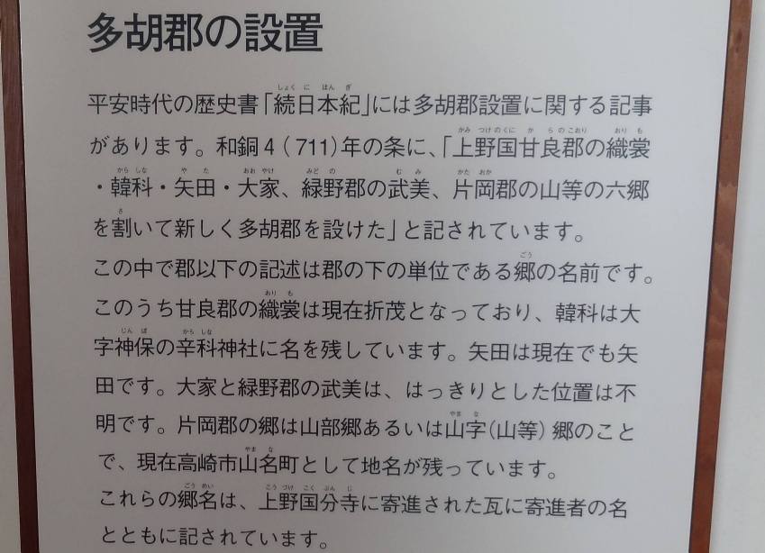 多胡郡の設置の説明の写真(多胡碑記念館で展示) 2014/2/28