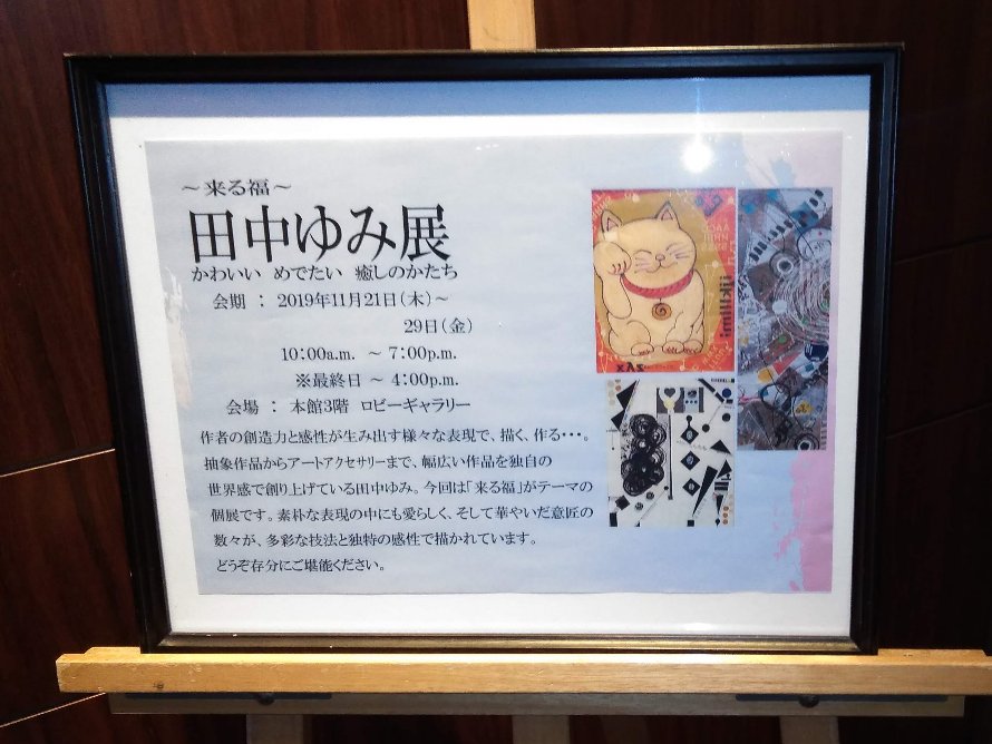 2019年11月21日〜29日の新宿京王プラザホテルでの田中ゆみ展より