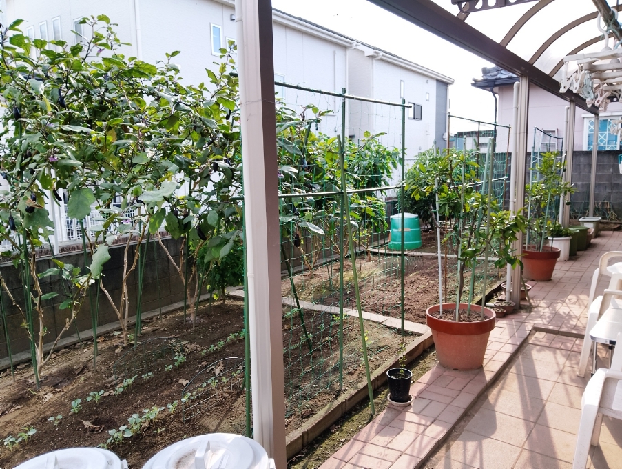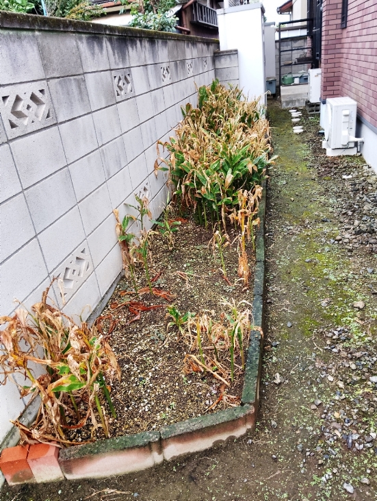 母屋の裏庭のみょうがの家庭菜園の様子 (2025/10/1) |