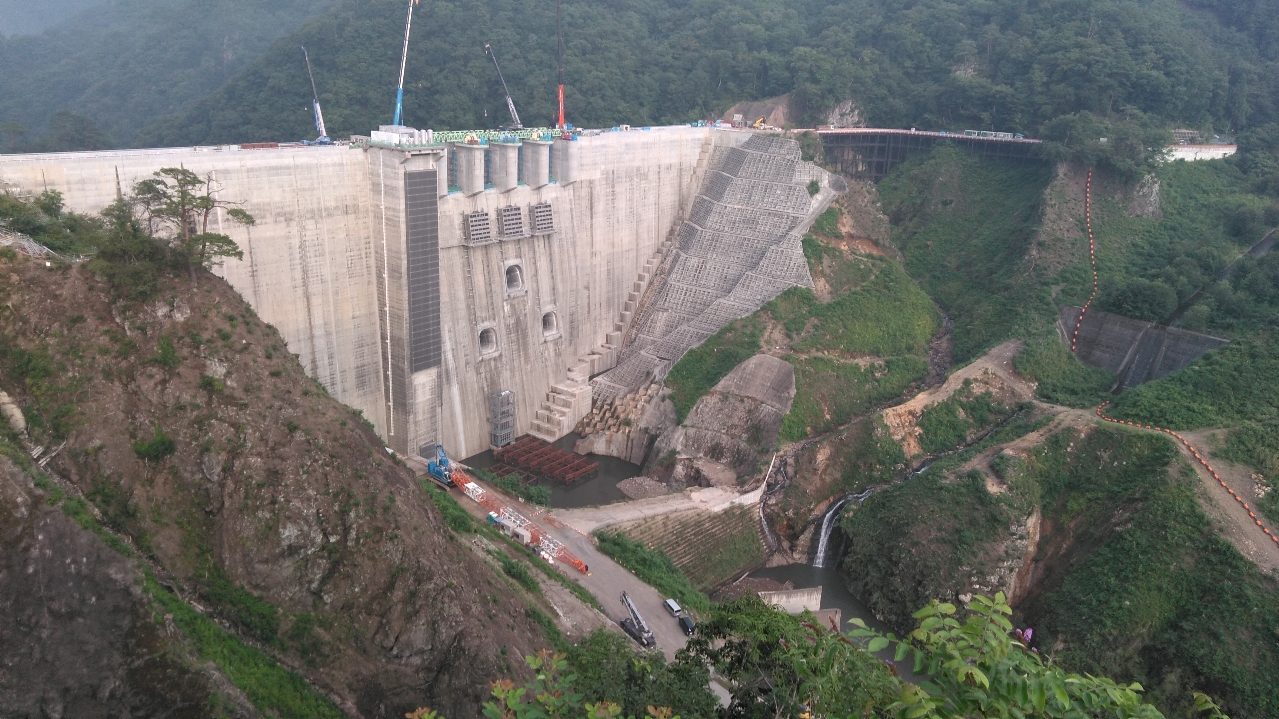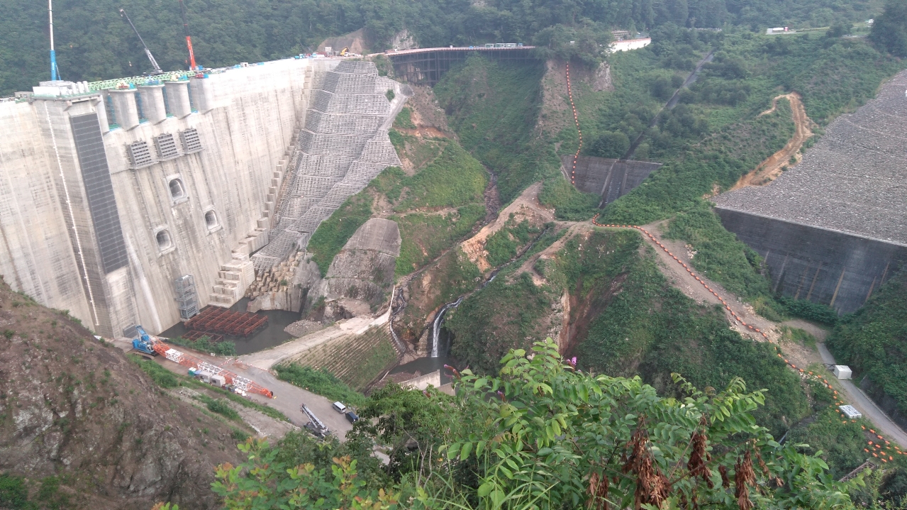 八ッ場ダムのダム本体の工事中の様子(2017/10/14) |