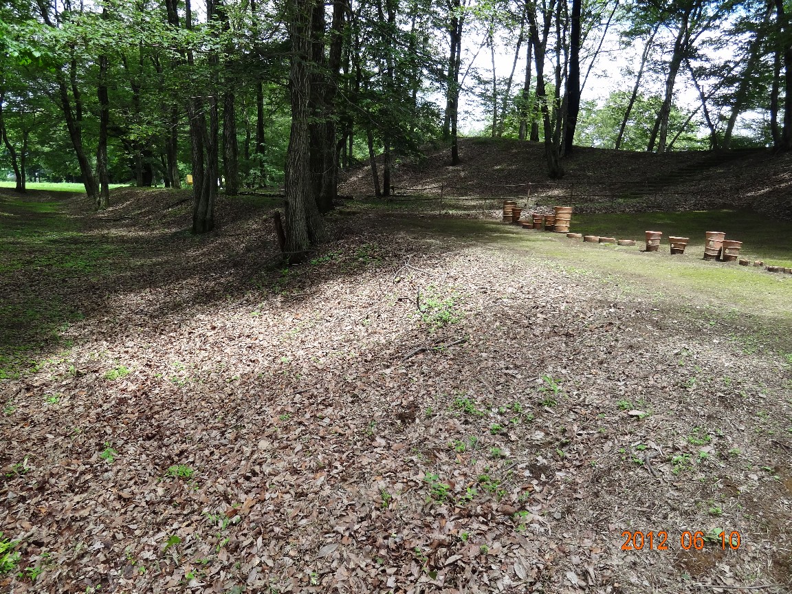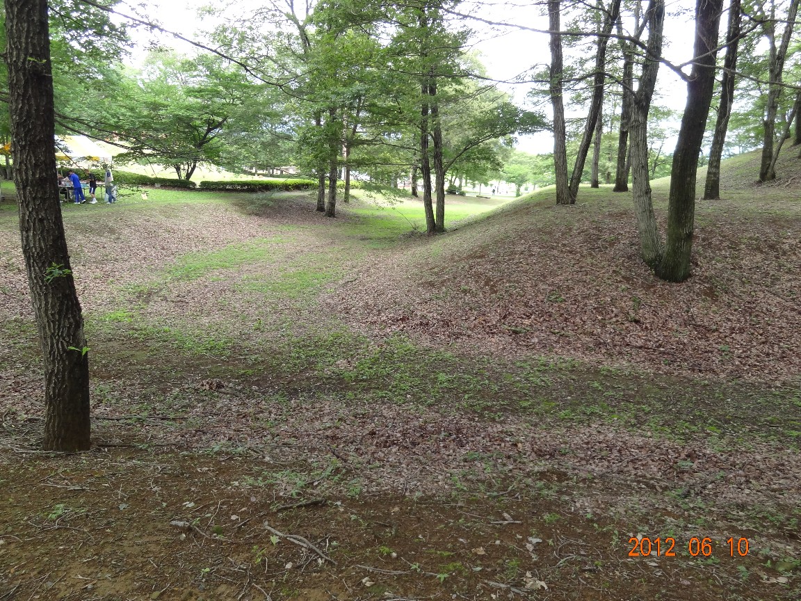 前橋市の大室古墳群の後二子古墳の周堀と墳丘のコーナーの様子(2012/6/10) |