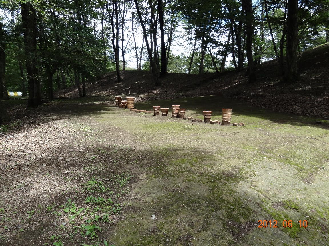 前橋市の大室古墳群の後二子古墳の石室の入口の左側の埴輪の列(2012/6/10) |