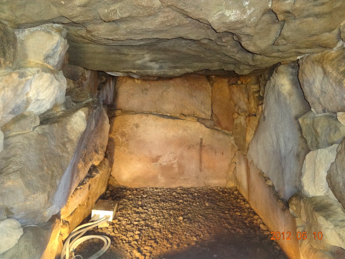 前橋市の大室古墳群の後二子古墳の石室の内部の右側面(2012/6/10) |