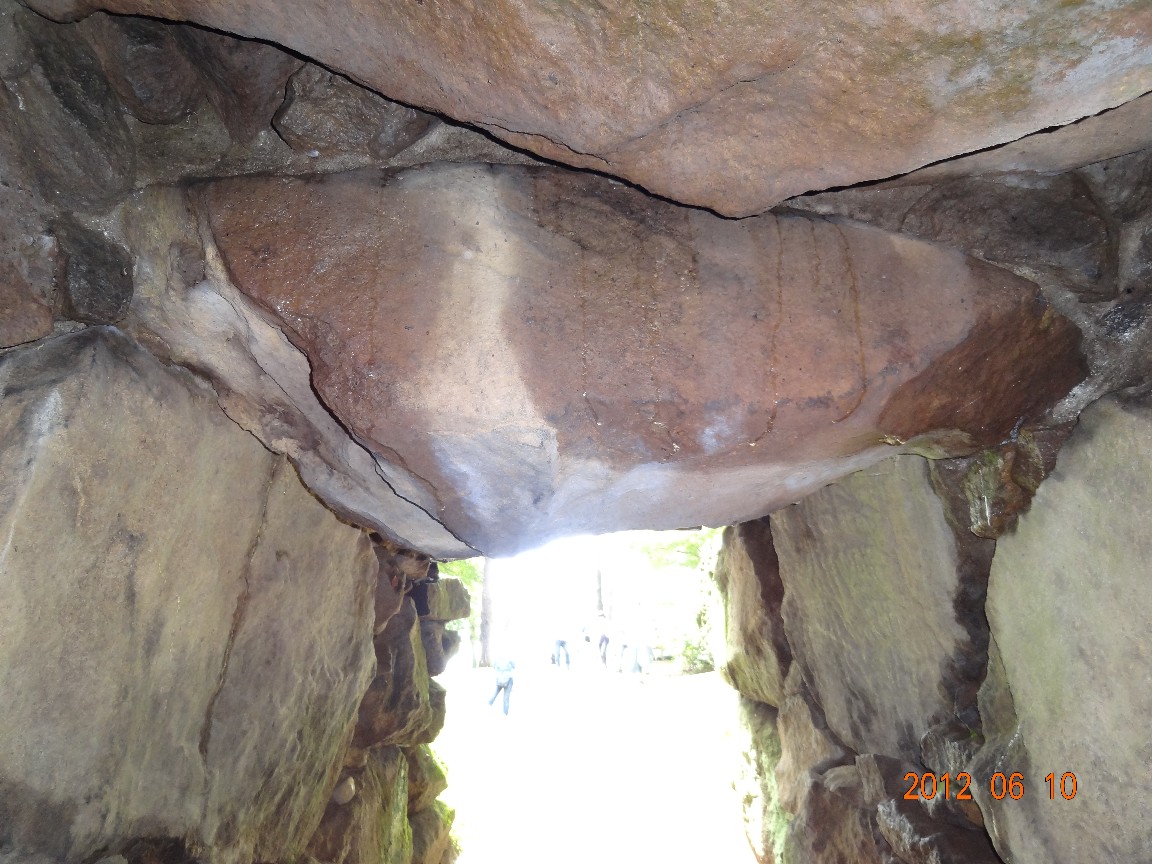 前橋市の大室古墳群の後二子古墳の石室の天井の大岩(2012/6/10) |