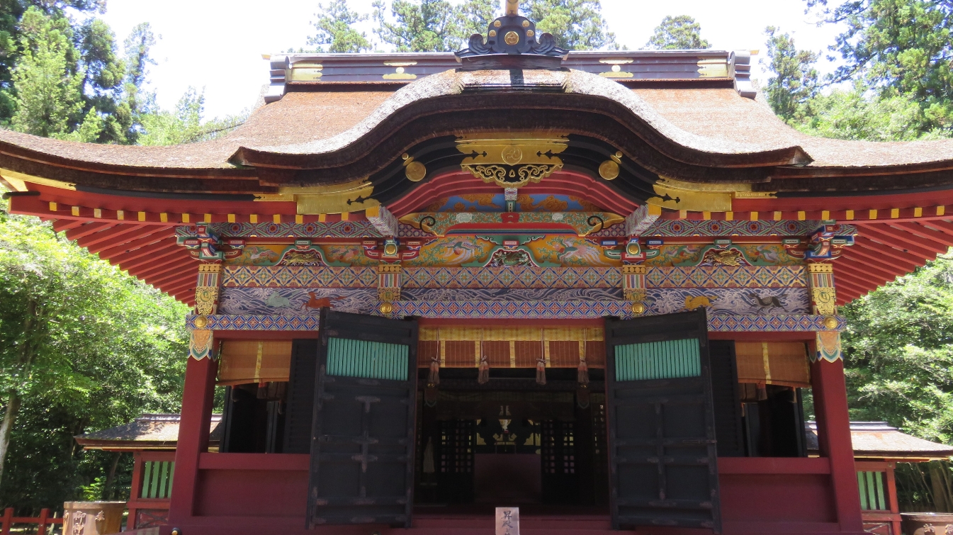 境内は正面参道からいったん石段を上がり、総門を潜ったところから石段を下ると社殿があるという、いわゆる「下り宮」と呼ばれる配置となっている。社殿は江戸時代に第3代将軍徳川家光・第5代綱吉により整えられ、本殿・拝殿・楼門等が重要文化財に指定されている。また、鹿占習俗(国選択・県指定無形民俗文化財)を始めとした多くの特殊神事を行っている。