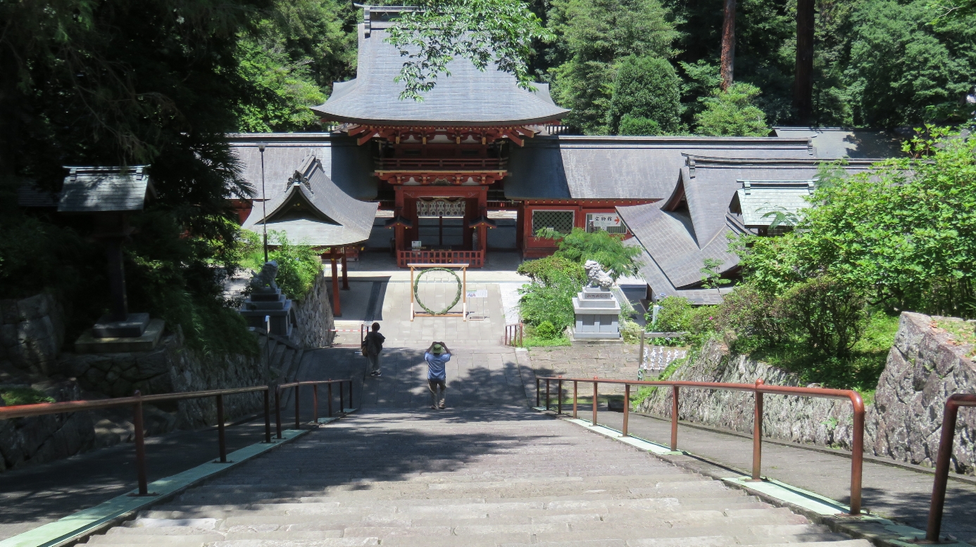 貫前神社の総門からは石段を下り楼門・拝殿・本殿へと行く(2025/6/28) |