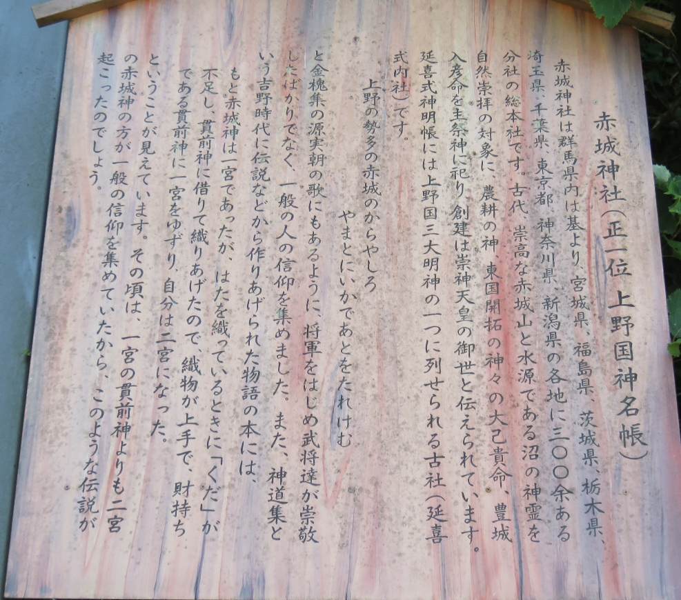 ●名神大社「赤城神社」・・・・・延長5年(927年)成立の『延喜式神名帳』には、名神大社として「上野国勢多郡 赤城神社」と記載があり、以下の3社が論社とされている。
