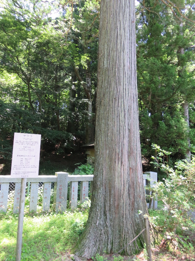 三夜沢赤城神社の参道の右横にある大きなサワラの木(2025/6/17) |