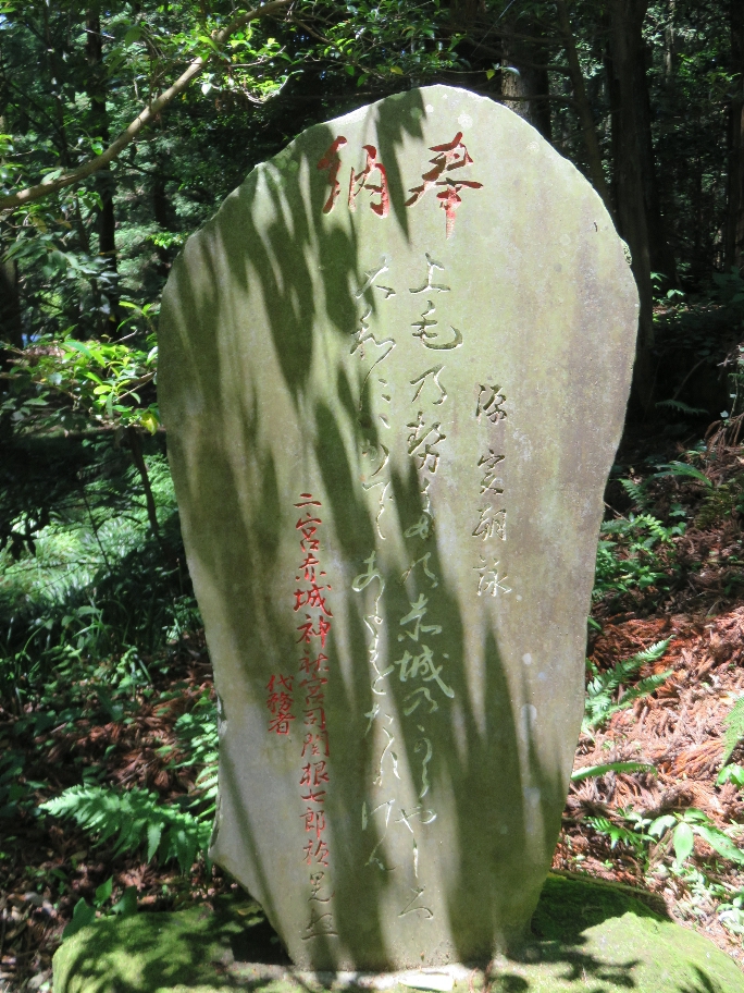 三夜沢赤城神社の参道脇の源実朝の歌碑(2025/6/17) |