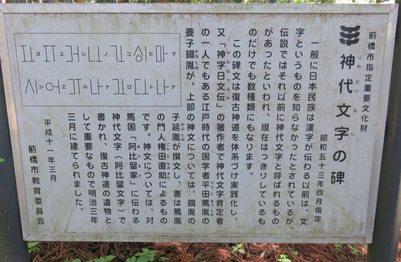 三夜沢赤城神社の参道脇にある神代文字の碑の説明版(2025/6/17) |