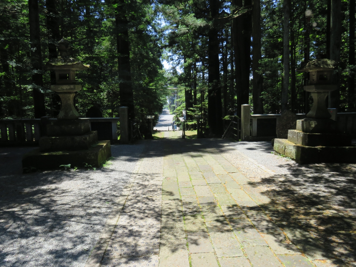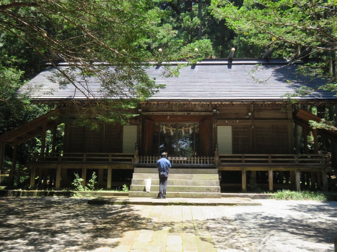 三夜沢赤城神社の拝殿前から通ってきた参道を振り返る(2025/6/17) |