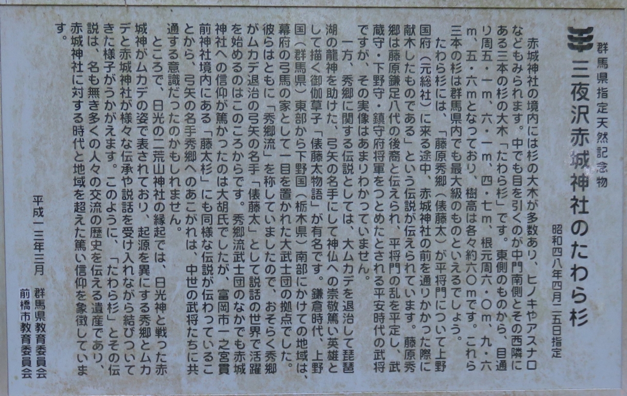三夜沢赤城神社のたわら杉の説明版(2025/6/17) |