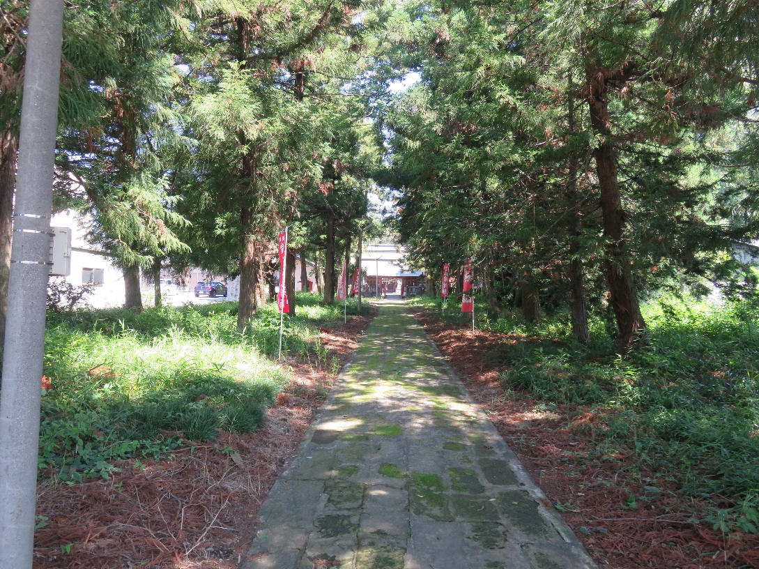 二宮赤城神社の参道入口の鳥居とその奥に続く長い参道(2025/6/17) |