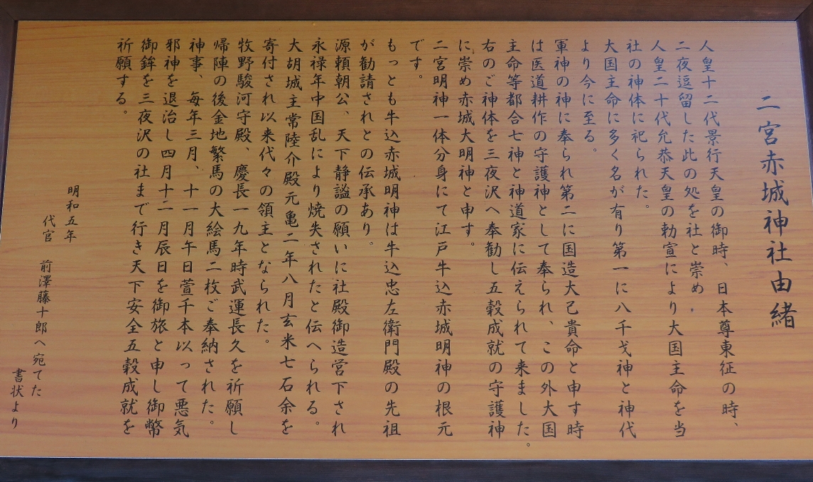 二宮赤城神社の由緒の説明版(2025/6/17) |