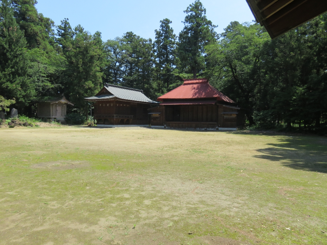 二宮赤城神社の拝殿とその奥の秋葉大明神と右側の日枝社とその右の宝物庫(2025/6/17) |