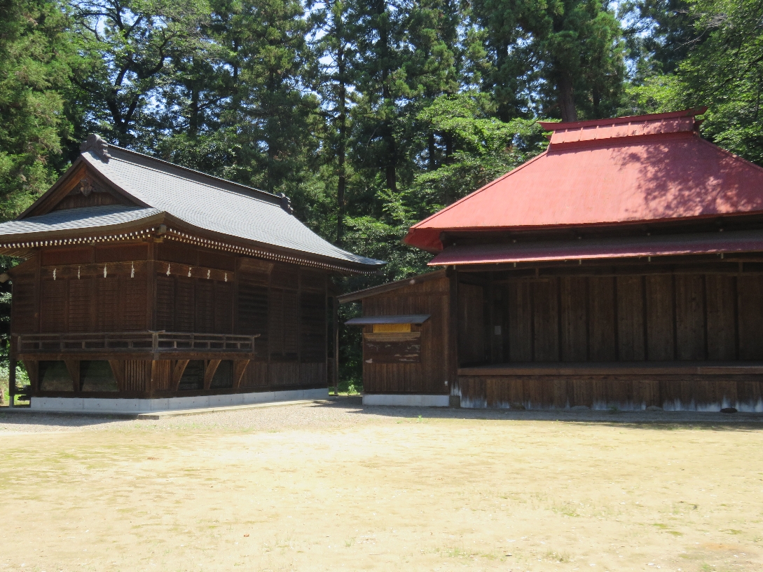 二宮赤城神社の拝殿とその奥の本殿と覆屋と手前の日枝社(2025/6/17) |