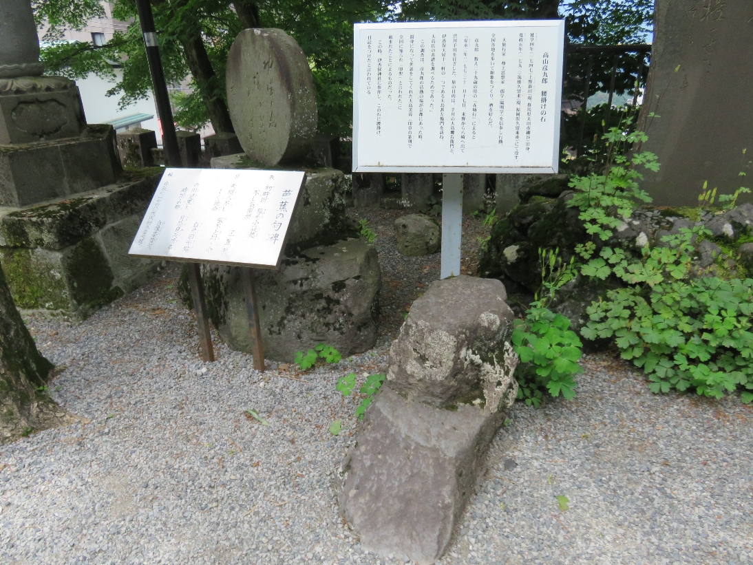 伊香保神社の境内の芭蕉の句碑と高山彦九郎の腰掛の石(2025/6/27) |