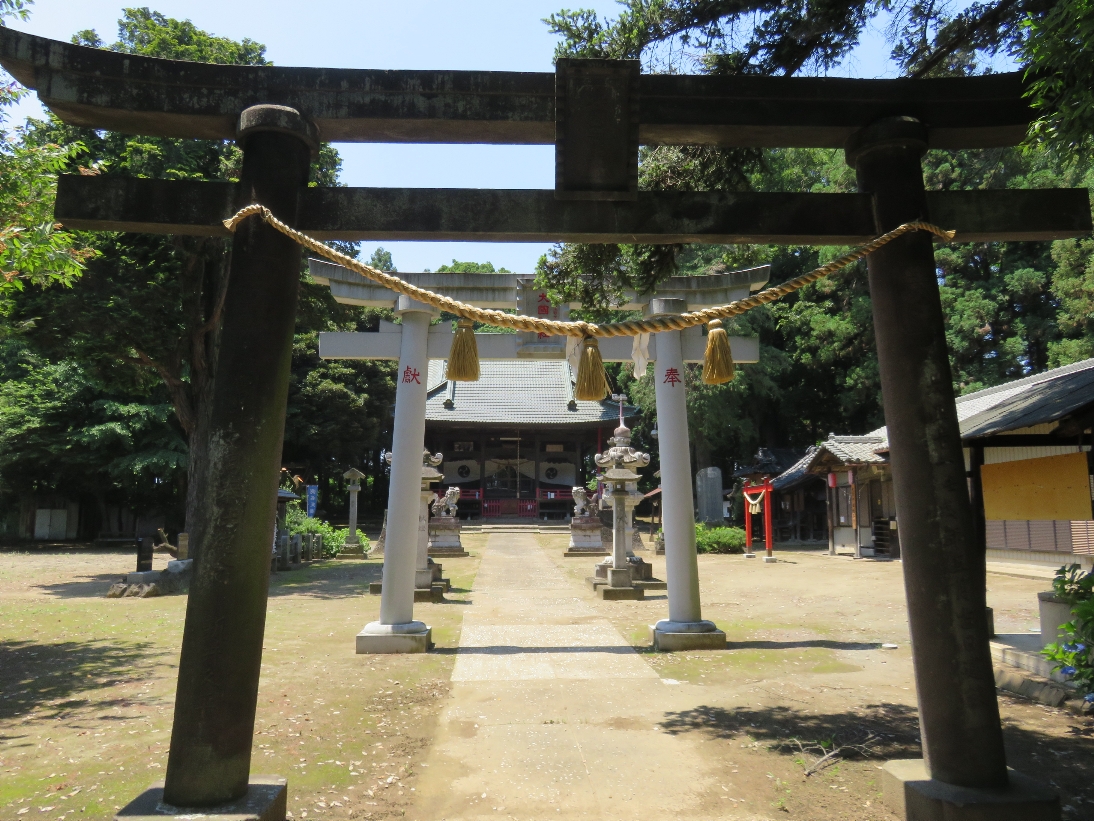 伊勢崎市の大國神社の境内の鳥居とその奥の拝殿(2025/6/17) |