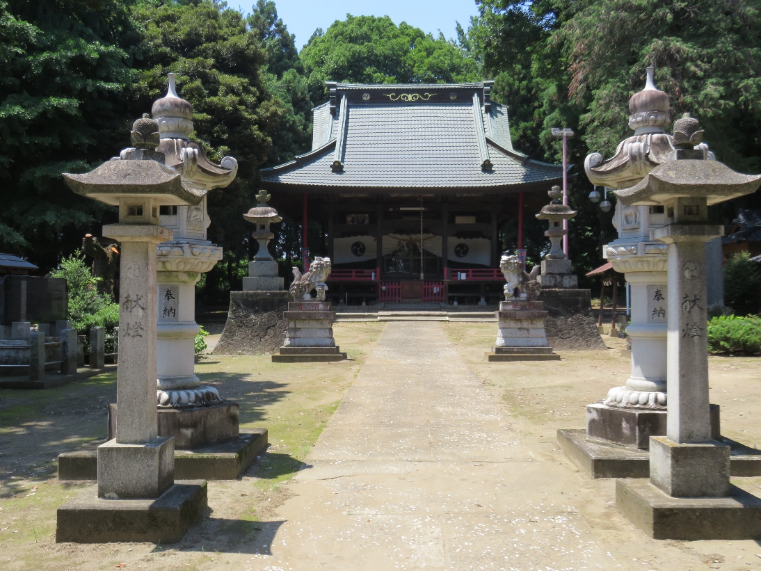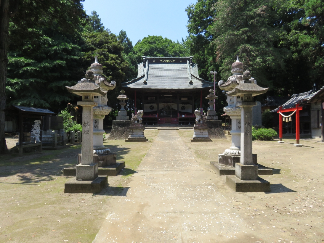 伊勢崎市の大國神社の参道と境内の鳥居とその奥の拝殿(2025/6/17) |