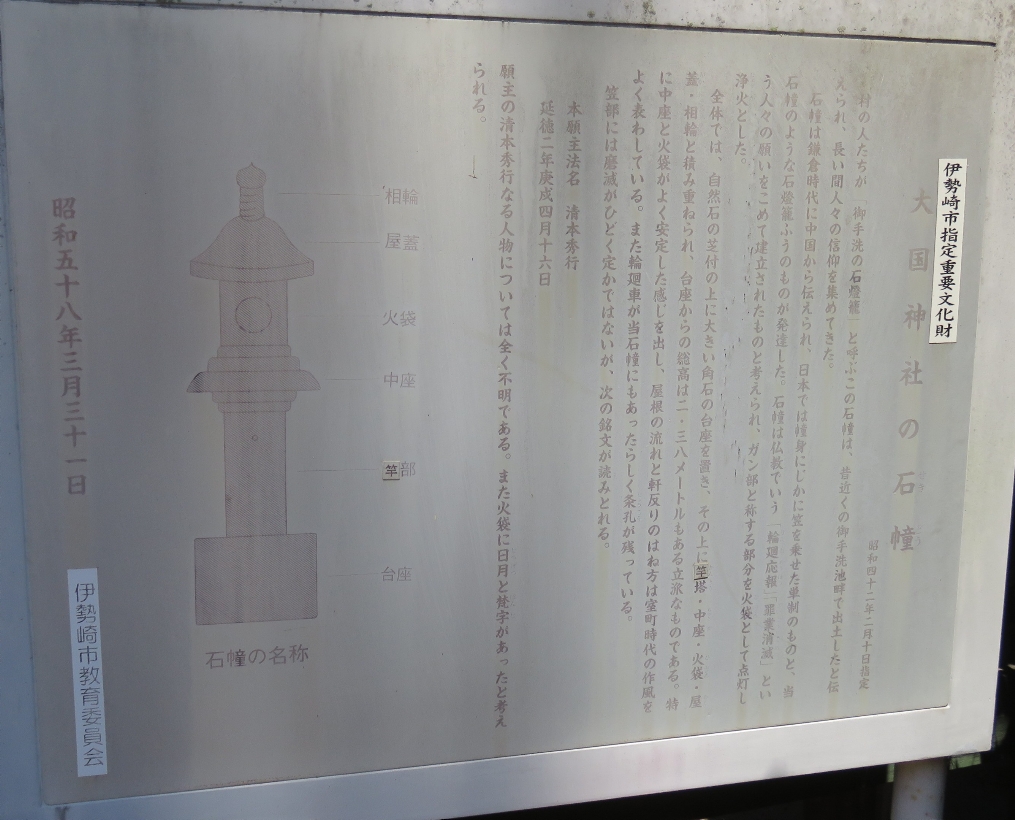 伊勢崎市の大國神社の文化財の石幢(せきどう:仏教の石塔の一種)の説明版(2025/6/17) |