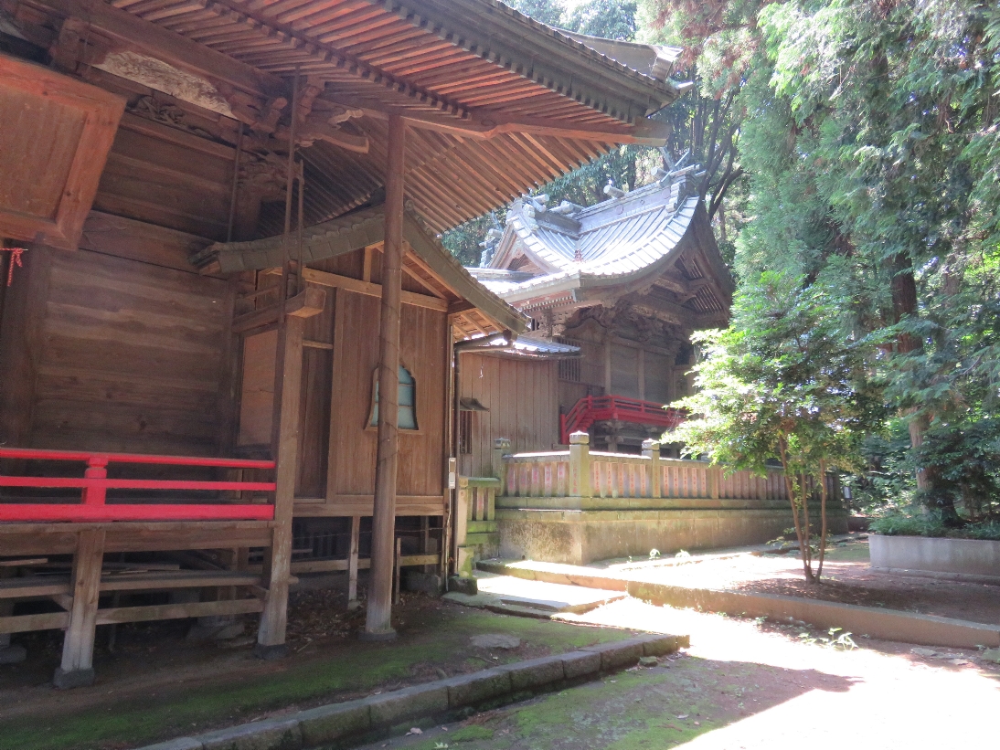 伊勢崎市の大國神社の拝殿の横側とその奥の本殿(2025/6/17) |