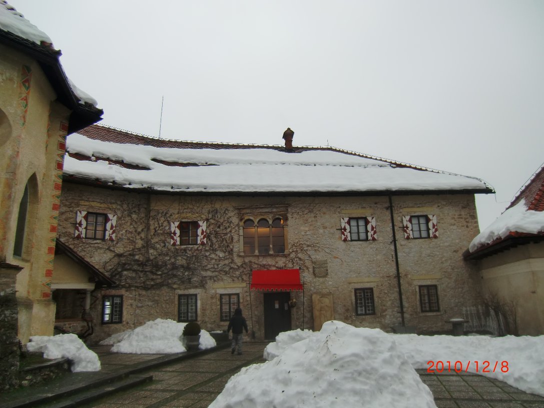 | スロベニア最古のブレッド城の城内の様子 2010/12/8 |
