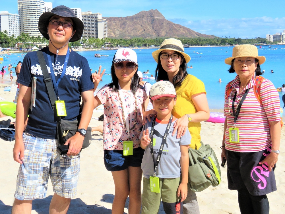 | 素敵なワイキキビーチで家族みんなで記念写真 2018/8/21 |