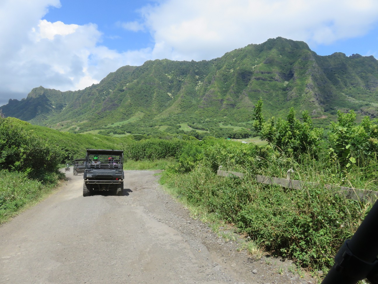 | クアロア・ランチのジャングルエクスペディションツアー(特別仕様車でワイルドな山道や小川を駆け抜けるツアー。2015年に公開されたジュラシックワールドのセットも見られる) 2019/8/21 |