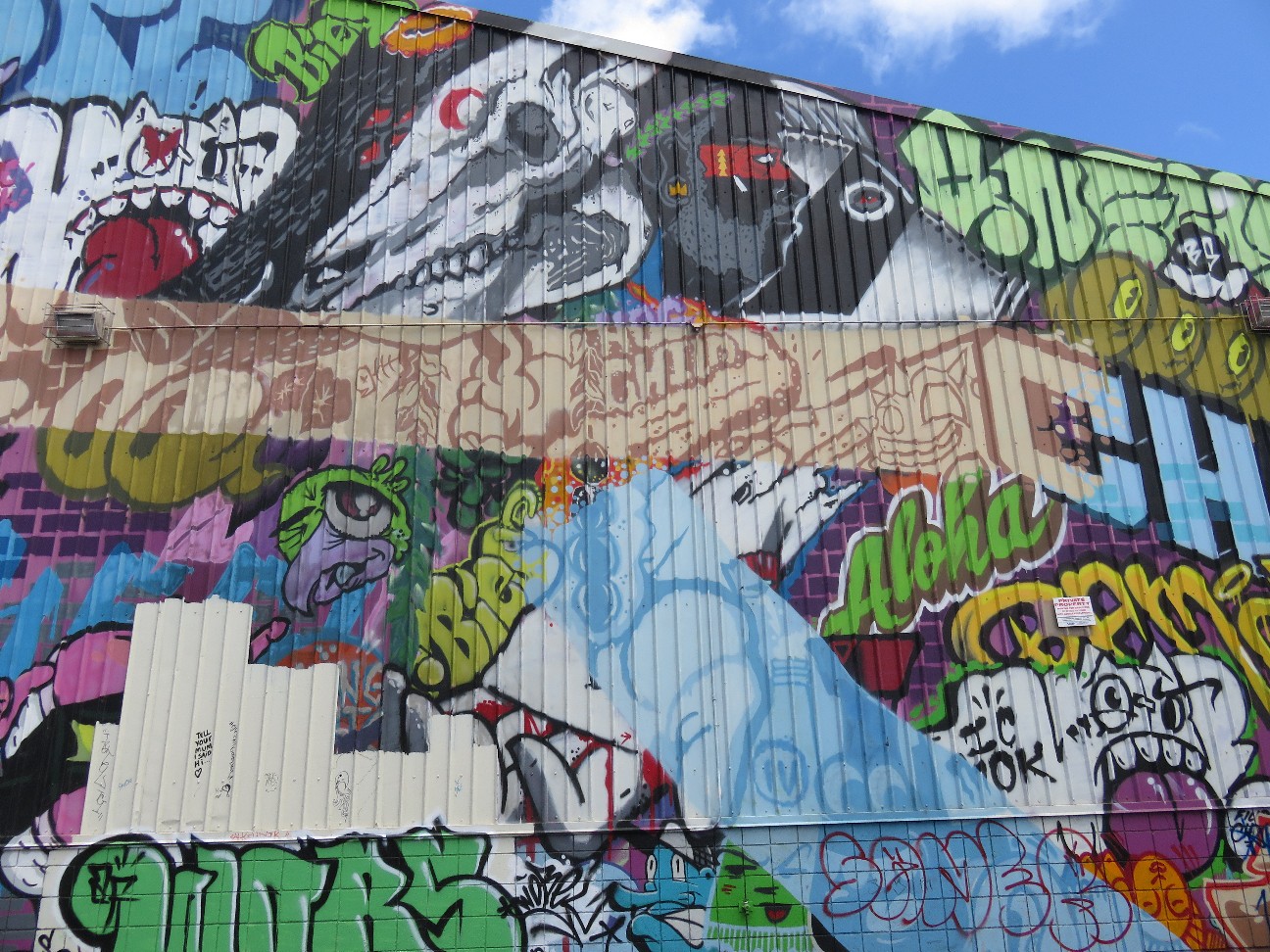 | カカアコ地区の壁アート・・・コーラルストリートの長〜い壁に描かれています。作者はPuff 2019/8/22 |