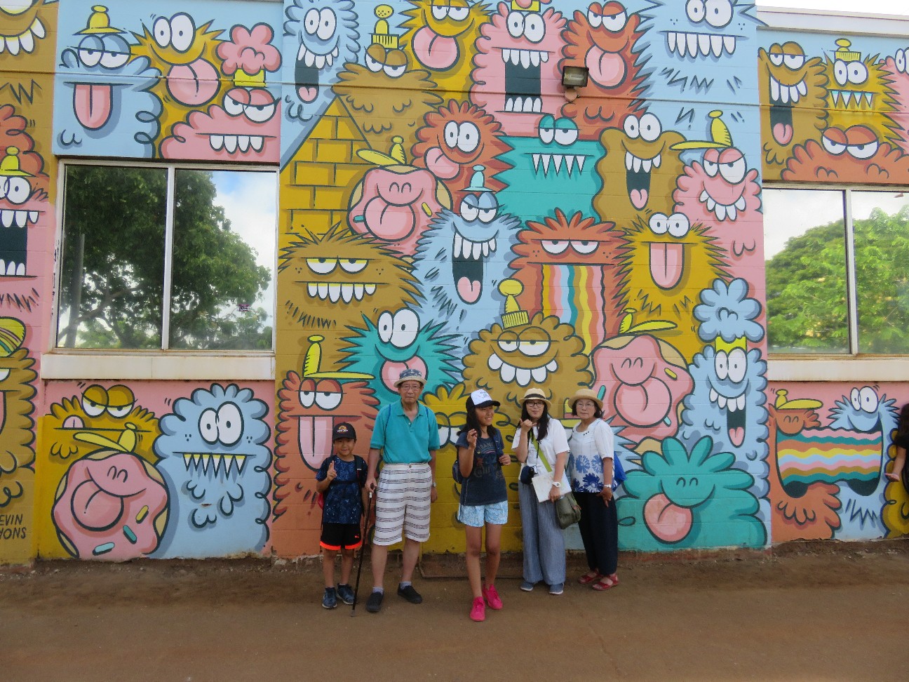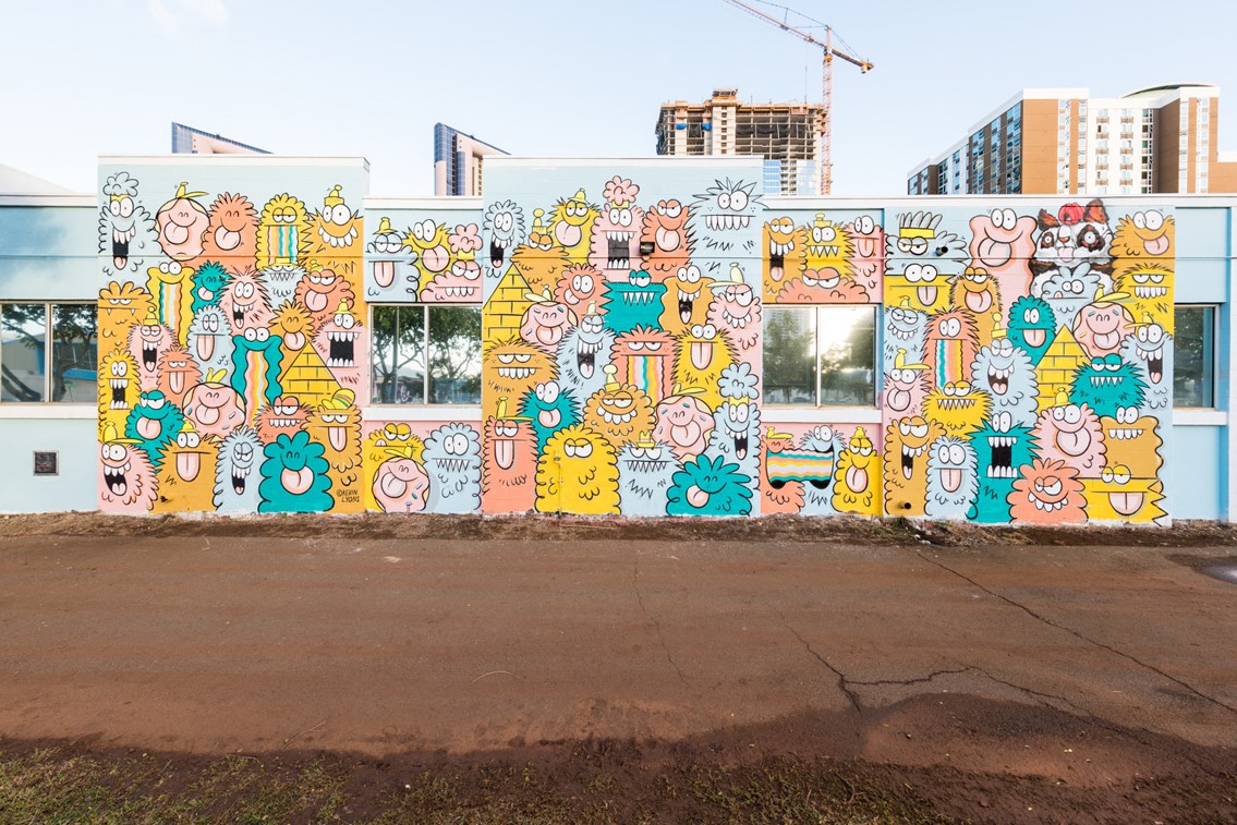 | カカアコ地区の壁アート・・・KEVIN LYONSが2017年に描いた、SNSでも最も人気のウォールアート「モンスター」はPOPなキャラと色合いがユニーク! 2019/8/22 |