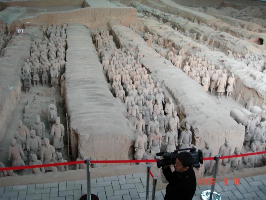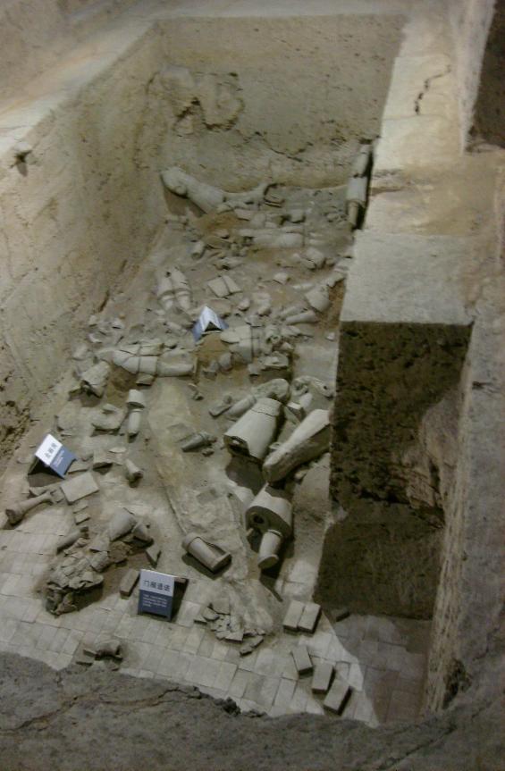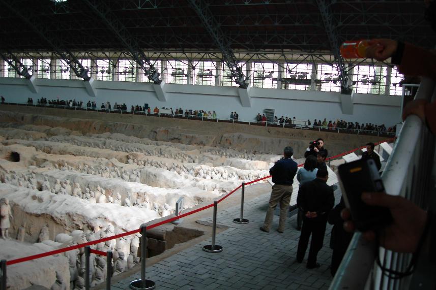 兵馬俑坑博物館の一号坑展示場の発掘途中の様子 |