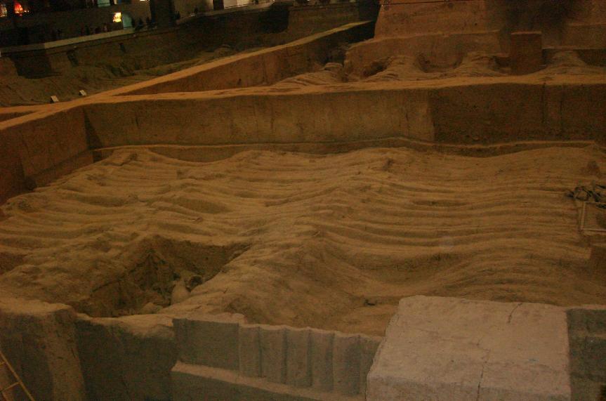 兵馬俑坑博物館の一号坑展示場の未発掘の様子 |
