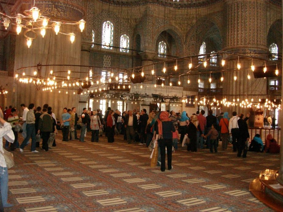 ブルーモスクの中(お祈りする時、きちんと座れるように一人ひとりの区分けがしてある)