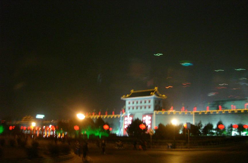 西安の城壁の南門の夜のライトアップの様子