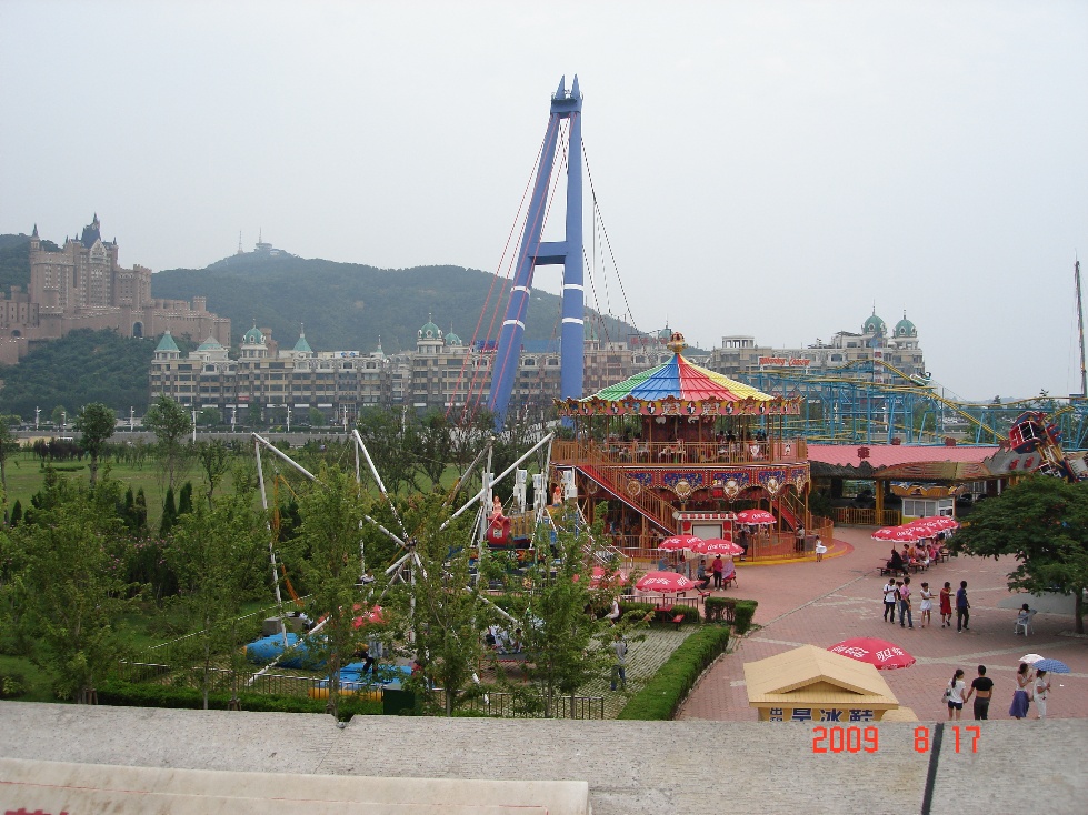 大連の星海広場の横の遊園地の方を撮った様子