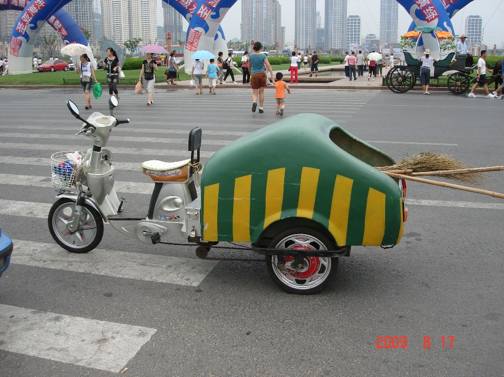 大連の星海広場の掃除する為の電動三輪自転車