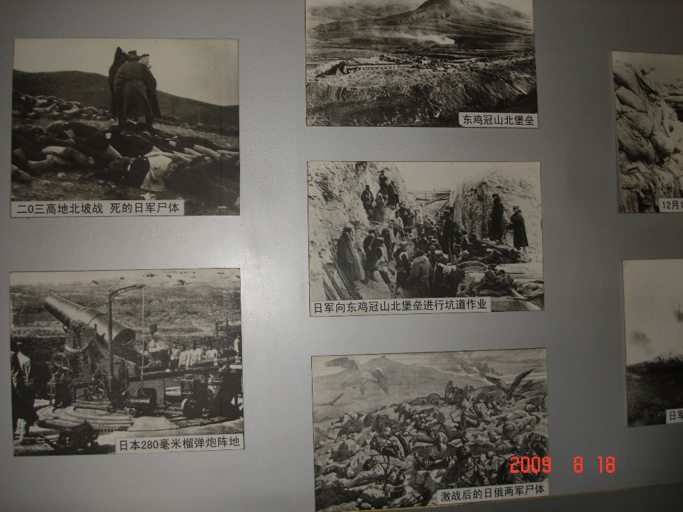| 旅順の水師営の中に貼られている日露戦争当時の古い写真の様子 | |