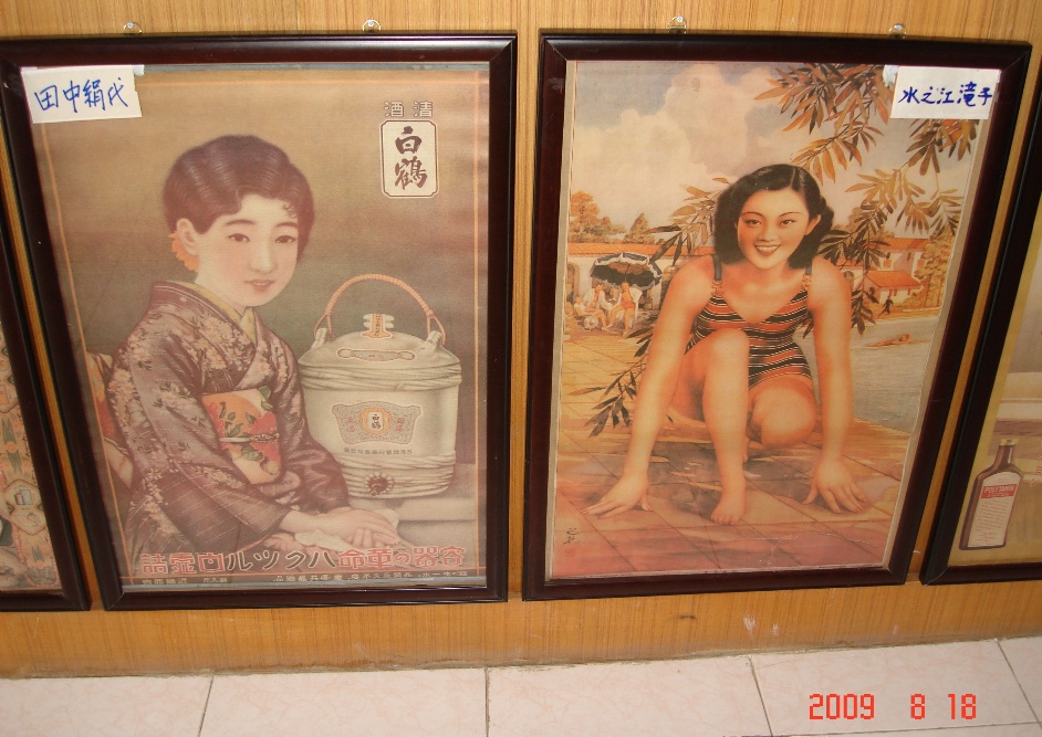 | 旅順の水師営の隣の売店の古い日本の女優のポスター(田中絹代・水の江滝子) | |