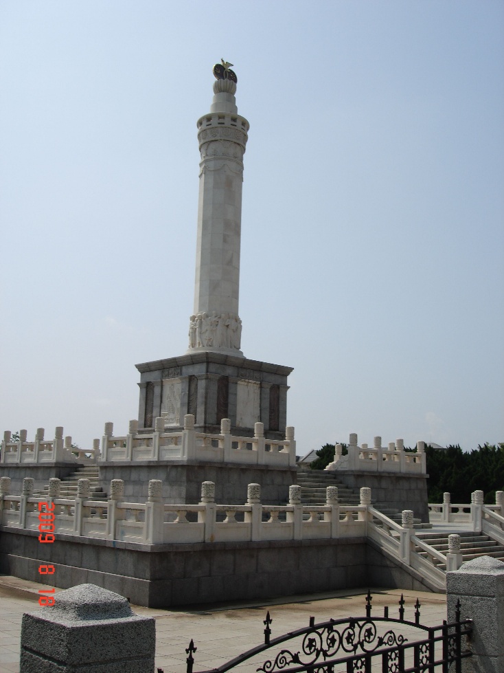 旅順の旧日本軍の関東軍司令部址の前にある記念碑の様子