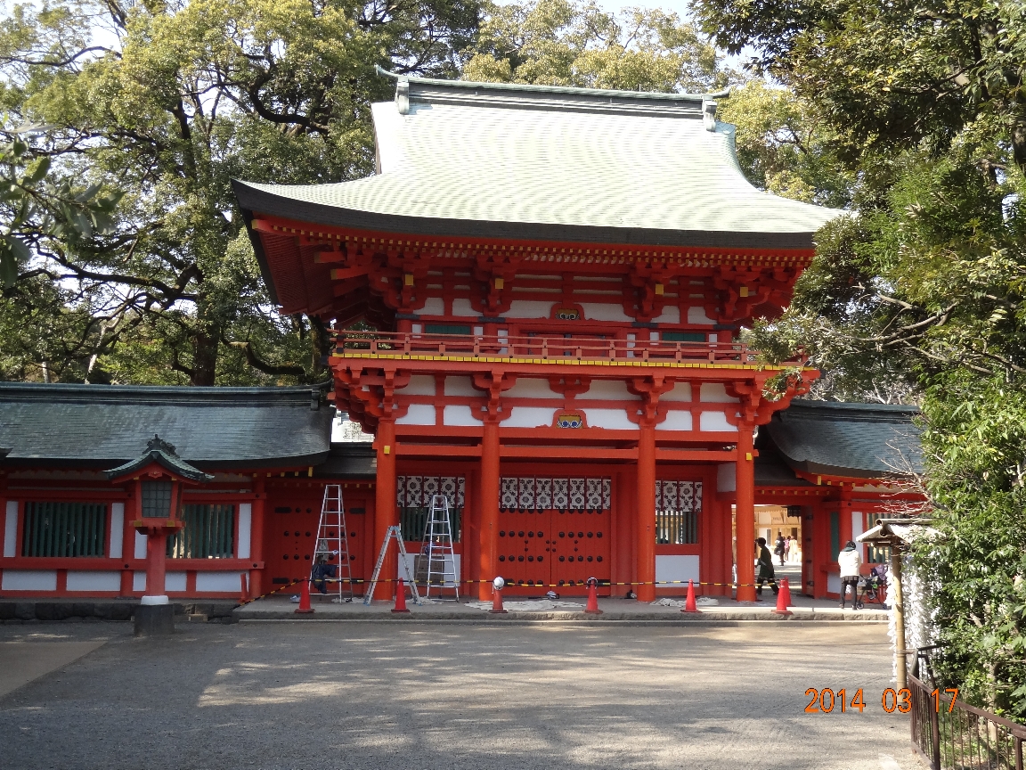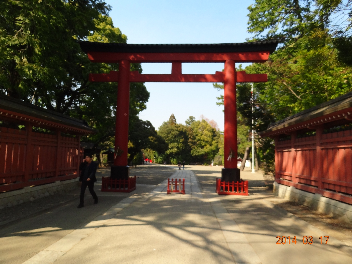 氷川神社の参道の二の鳥居(2014/3/17) |
