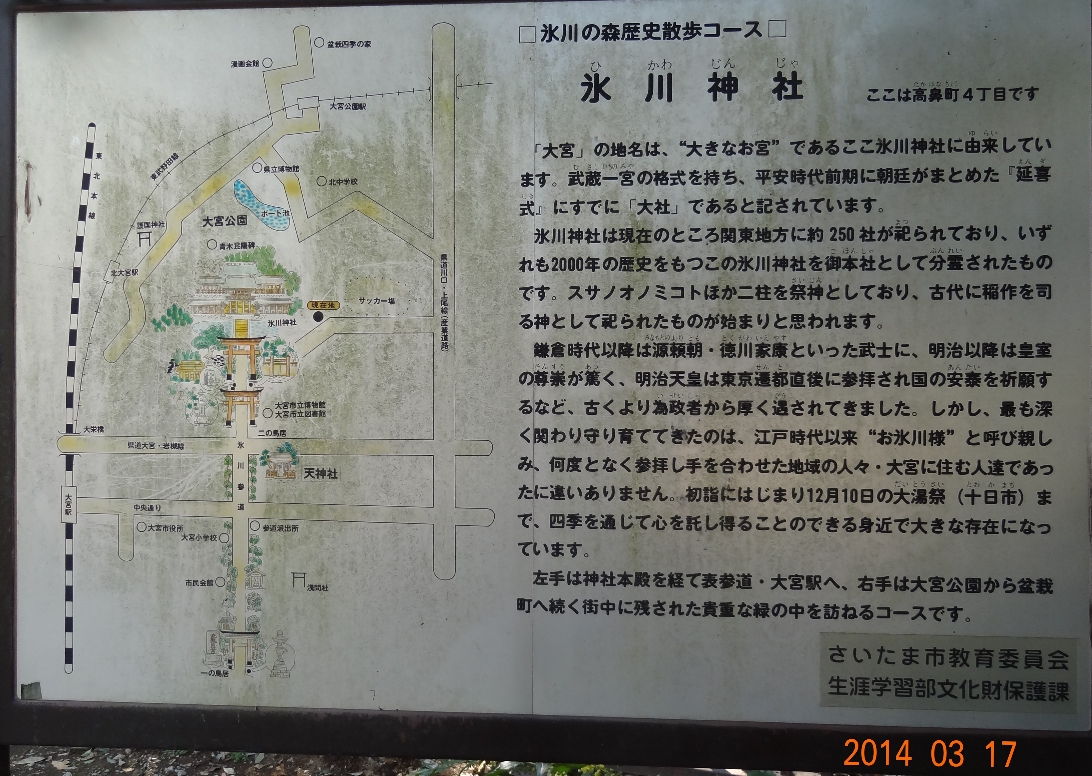 氷川神社の散歩コースの案内図(2014/3/17) |