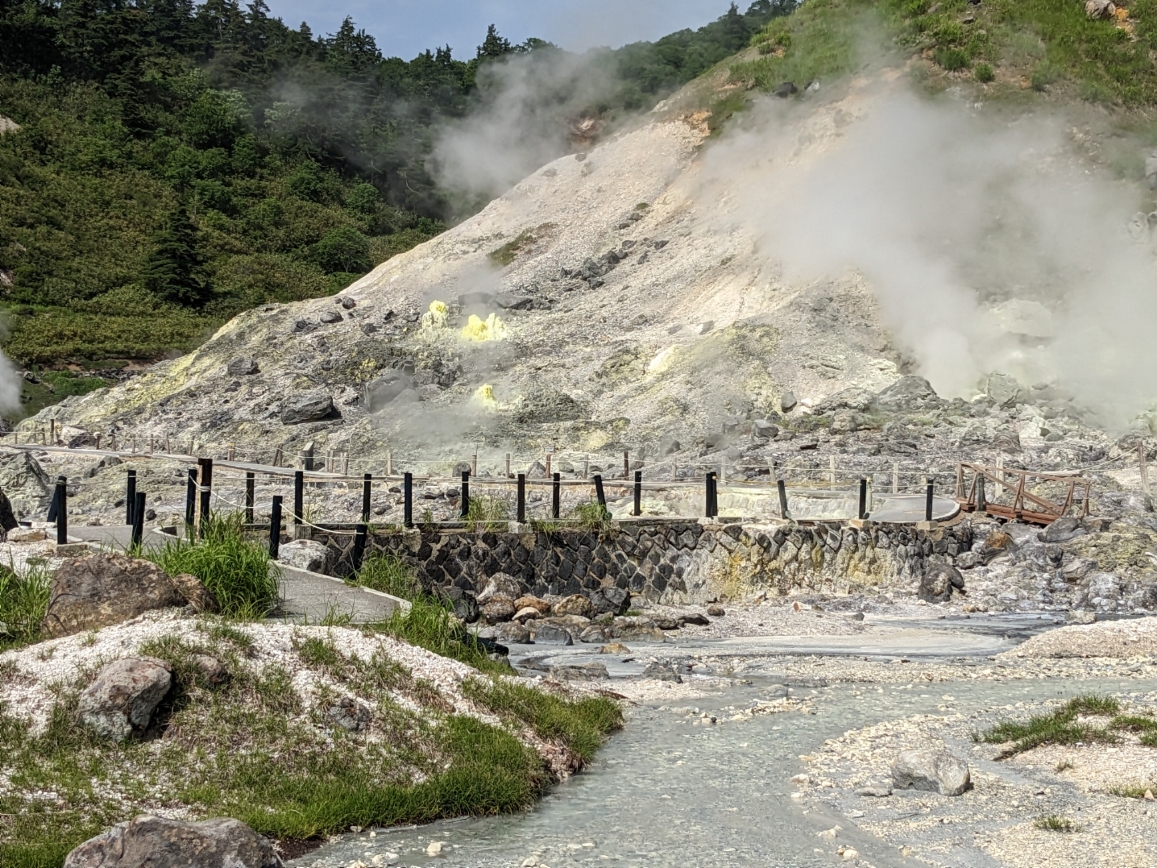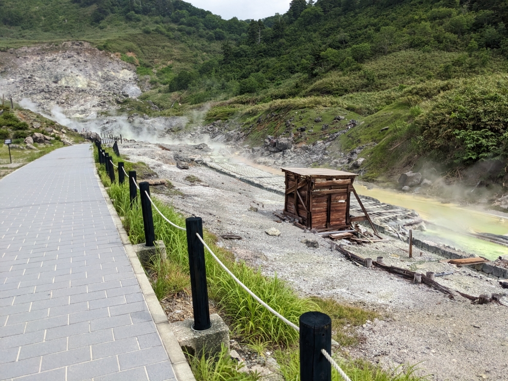 玉川温泉の自然研究路の湯の花の採取地(2023/7/7) |