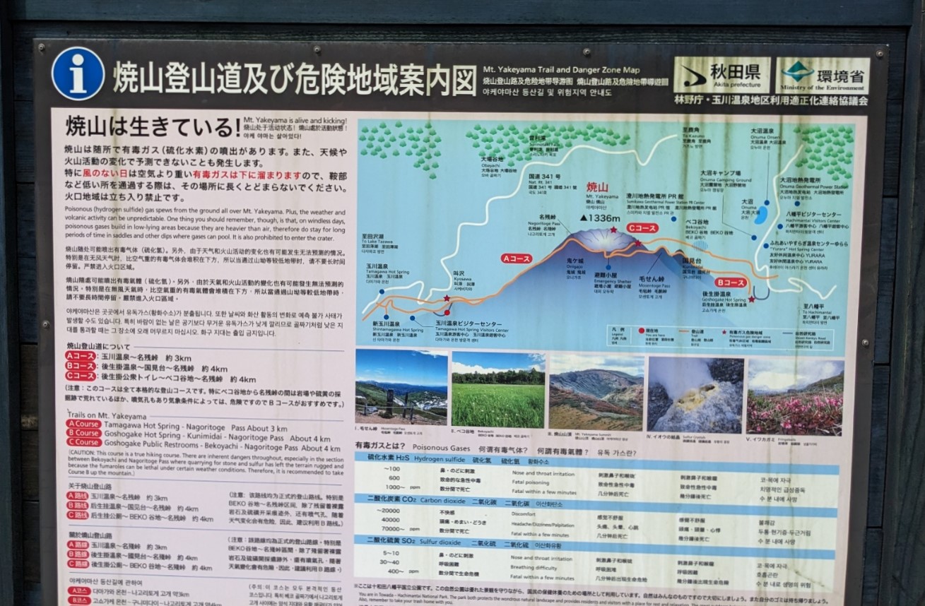 玉川温泉の自然研究路の危険地域案内図(2023/7/7) |