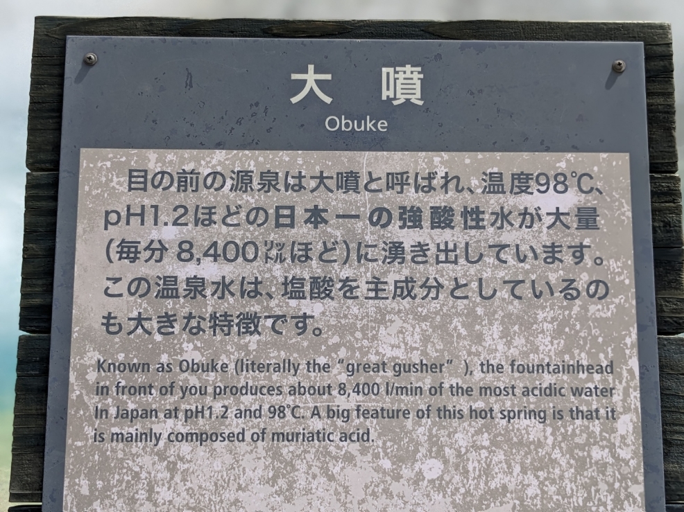 玉川温泉の自然研究路の大噴(玉川温泉の源泉)の説明版(2023/7/7) |