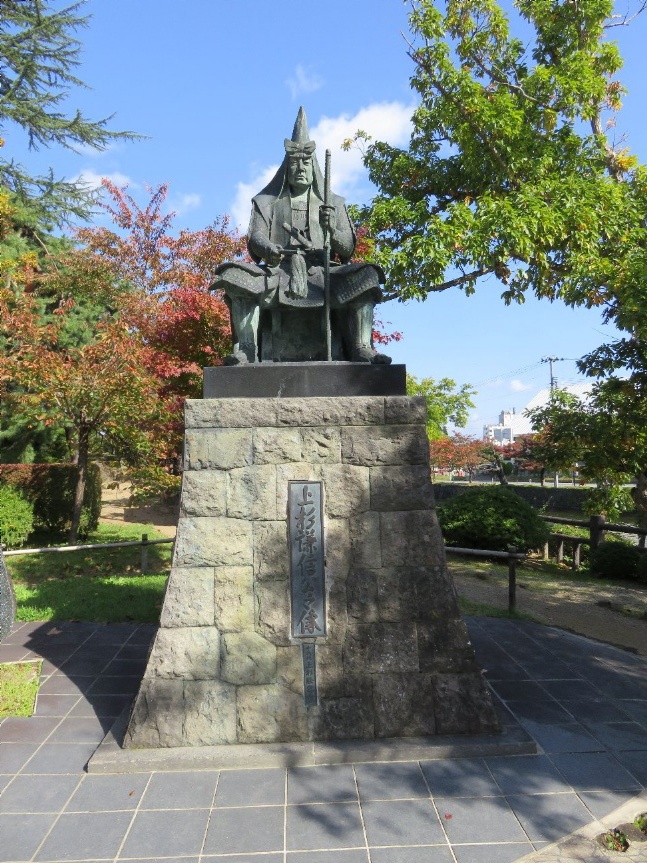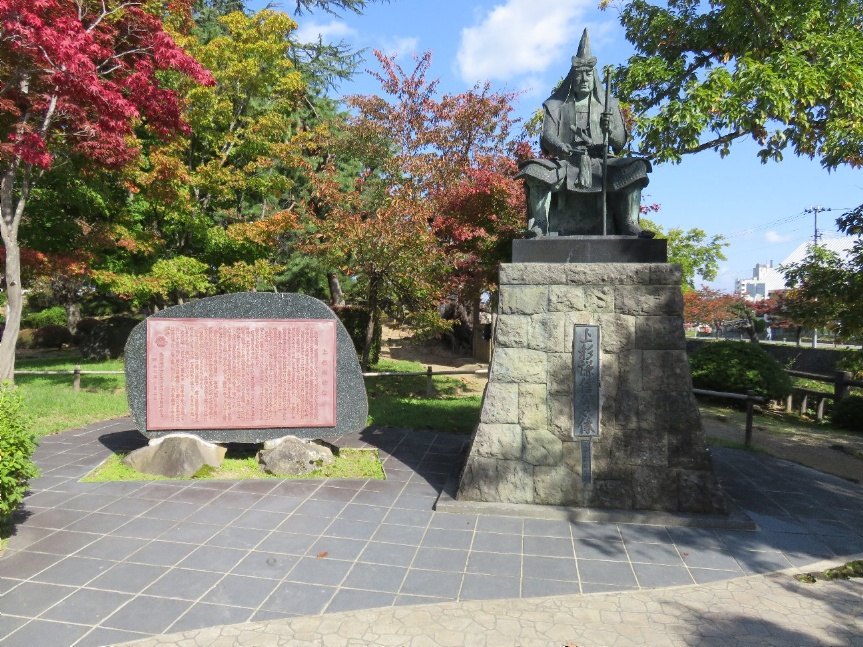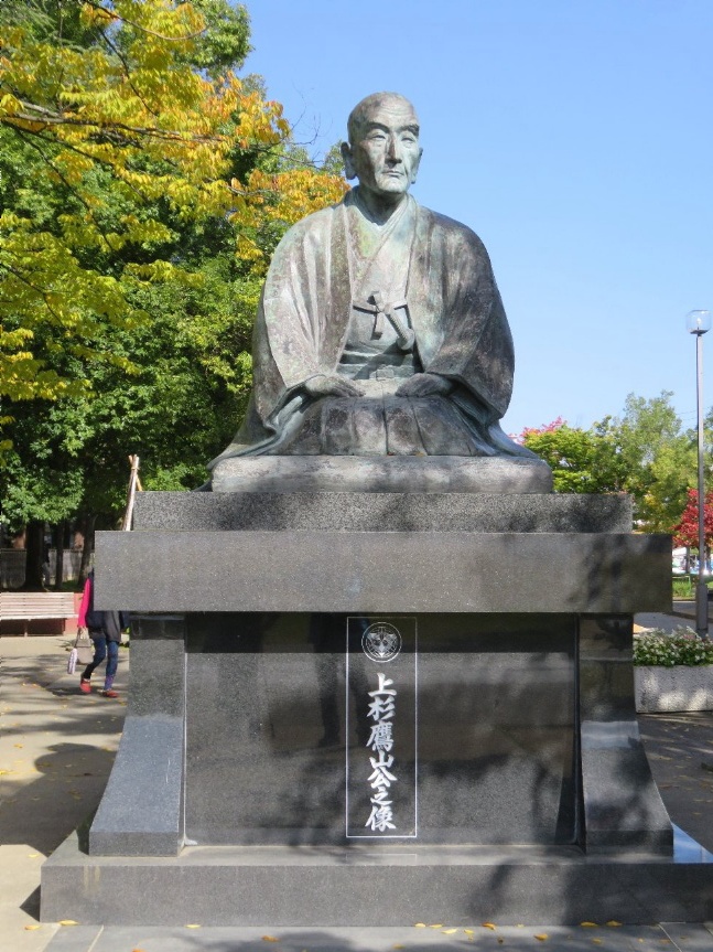 米沢市の松が岬公園の上杉鷹山公の立像(2018/10/25) |