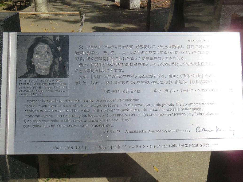 米沢市の松が岬公園の上杉鷹山公へのキャロライン・ケネデイ駐日大使の説明版(2018/10/25) |