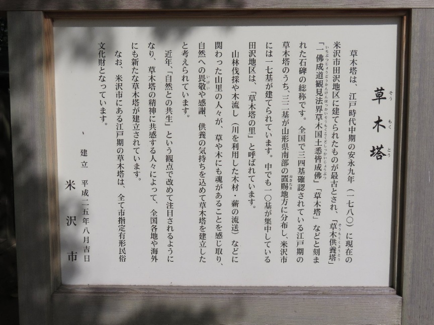 米沢市の松が岬公園の草木塔の説明版(2018/10/25) |