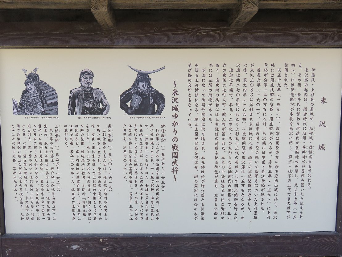 米沢市の松が岬公園の米沢城の説明版(2018/10/25) |