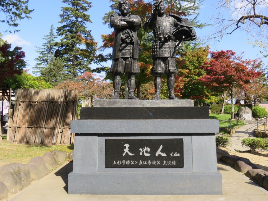 米沢市の松が岬公園の上杉景勝公と直江兼続公主従像(2018/10/25) |