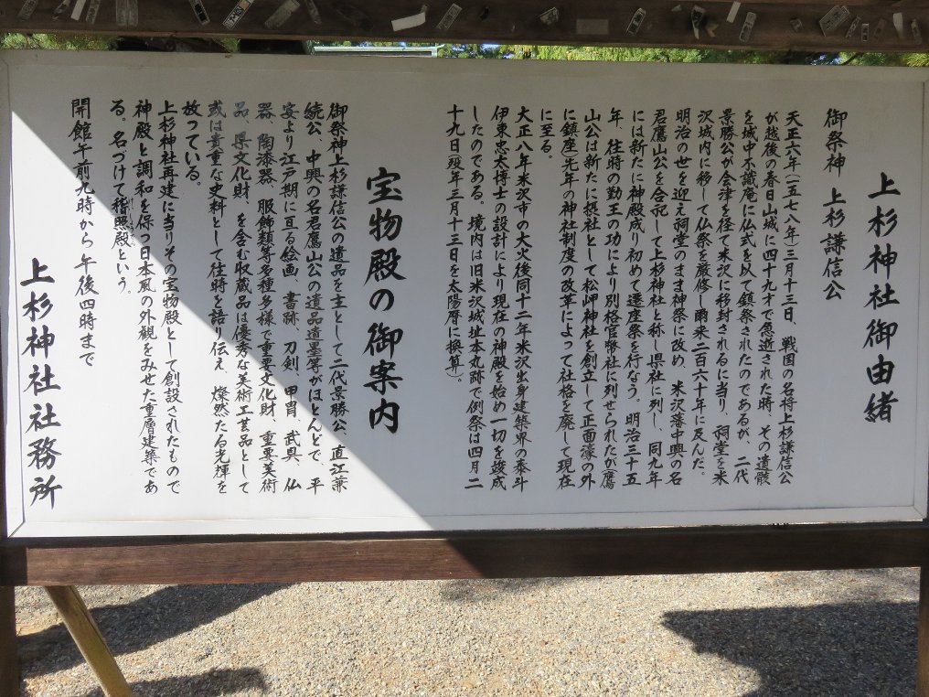 米沢市の松が岬公園の上杉神社の説明版(2018/10/25) |